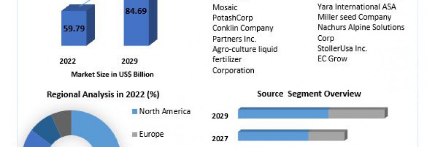 Nitrogen Nutrients Market size was valued at US$ 59.79 Bn. in 2022 and the total revenue is expected to grow at a CAGR of 5.1% through 2022 to 2029, reaching nearly US$ Bn.